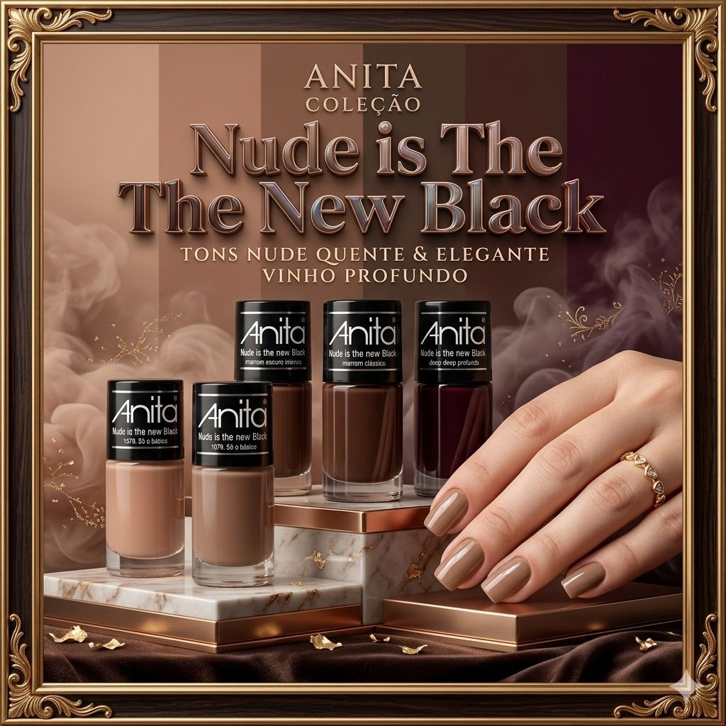 A Coleção The Nudes and Black Anita 8ml é a escolha perfeita para quem busca elegância atemporal e versatilidade nas unhas. Com uma seleção refinada de tons nude combinados com o clássico preto intenso, essa linha oferece opções ideais tanto para o dia a dia quanto para ocasiões sofisticadas.